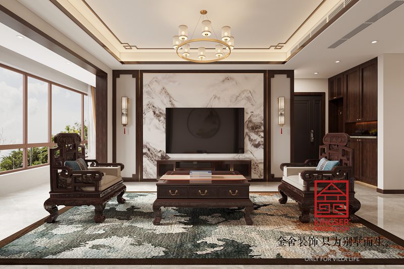 衡水漢王府別墅裝修現代法奢風格客廳效果圖