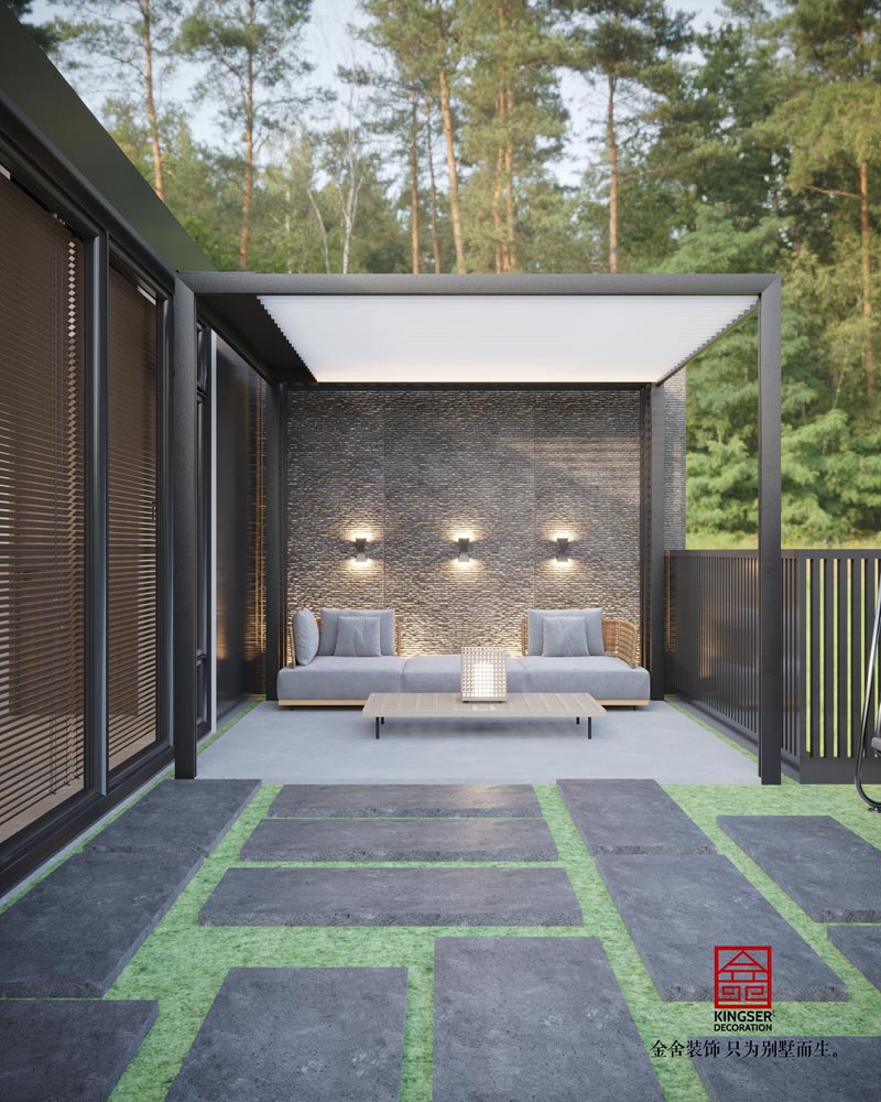 國山雅苑300平新中式別墅裝修庭院效果圖