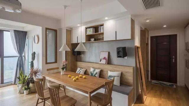 如今很多人因為剛需而買的房子都是屬于小戶型,所以家里的空間并不是很大。如果餐廳這個區域依舊買一套大的餐桌椅,那么空間會顯得非常擁擠,而且也不好看。所以餐廳都會選擇卡座設計,不僅可以省空間,而且美觀度也大大提高。最重要的是,卡座是一個可以充當收納的好地方!