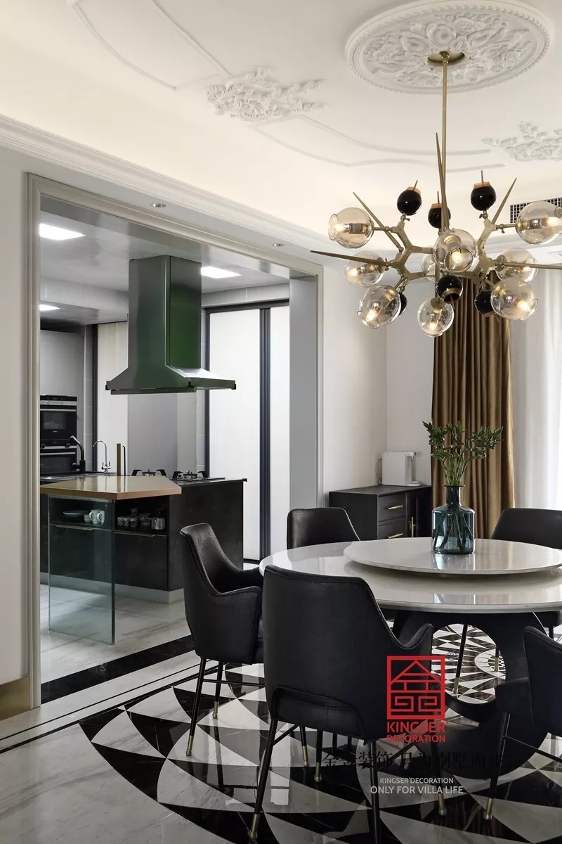 吧臺(tái):把吧臺(tái)看作是整個(gè)空間的一部分,作為分隔室內(nèi)空間的立面。遵循家人的生活方式、用餐習(xí)慣、休閑娛樂取向等合理設(shè)計(jì)吧臺(tái)隔斷。