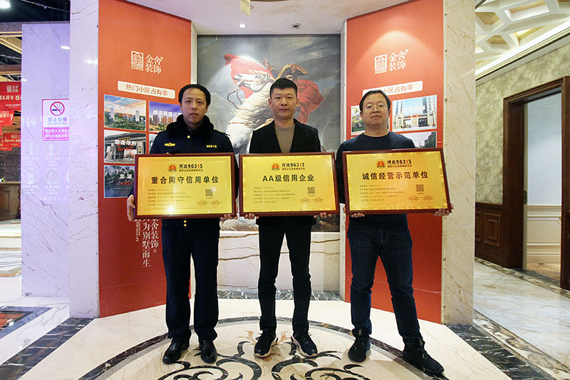 恭喜金舍裝飾榮獲河北96315監(jiān)督機(jī)構(gòu)頒發(fā)的雙A級信用企業(yè)