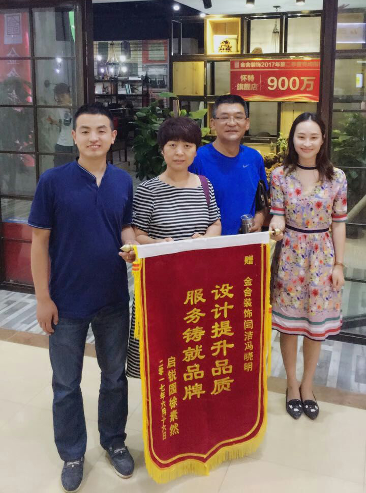 感謝啟銳園徐女士給石家莊裝修公司金舍裝飾閆潔老師送來錦旗,同時也非常感謝負責他們家的主材管家馮曉明,客戶的滿意是我們衡量口碑的唯一標準。