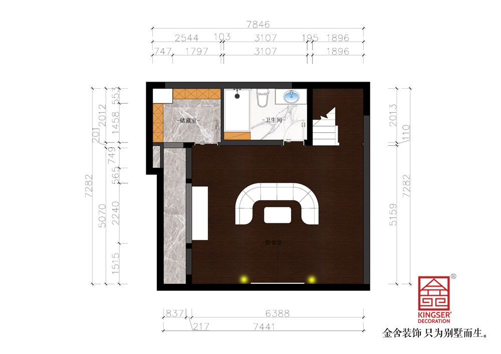 劃分原始門廳為兩個(gè)獨(dú)立空間,一個(gè)為獨(dú)立門廳,另一個(gè)為儲(chǔ)物衣帽間。