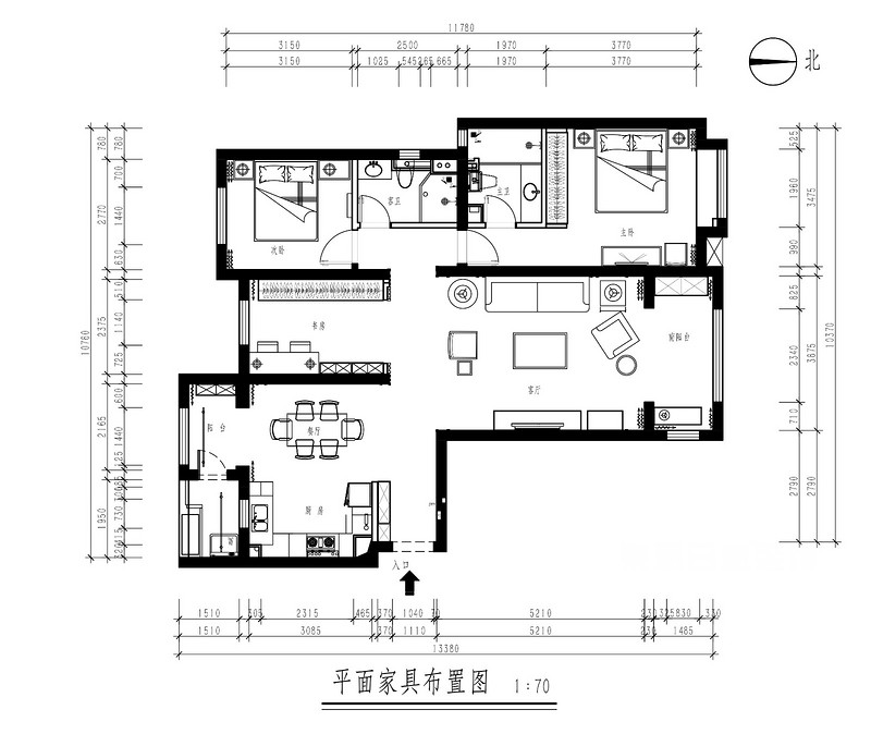 石家莊金舍裝飾設計師深入考察房子結構后,根據業主需求把書房和過道的墻打通,解決了空間狹小問題,坐在沙發上也能看到北面的風景,這樣擴展了空間,同時讓人置身在美好的風景中。同時利用書房的墻面做了整體柜子,解決了次臥沒有儲物空間的局面。