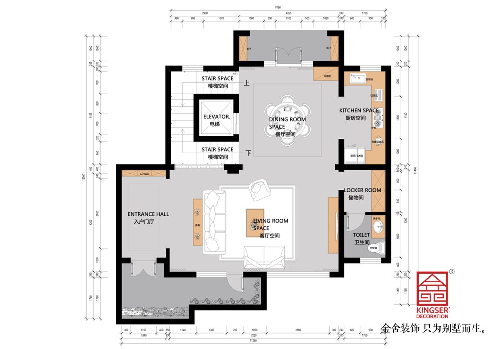 1、將玄關走廊,客廳與餐廳相連弱化空間劃分,增大客廳感官上的空間擴大化。