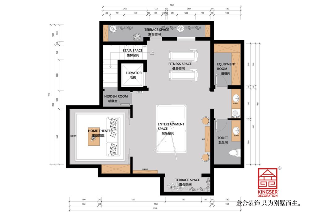 2、利用采光不足增加影音室。