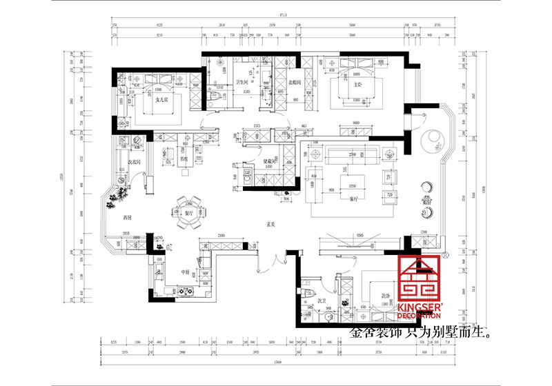 1.應業主要求改造了一部分主臥的衛生間,并把女兒房與主臥的衛生間合并。給主、臥內增加了一個衣帽間,使主臥看起來十分大氣。