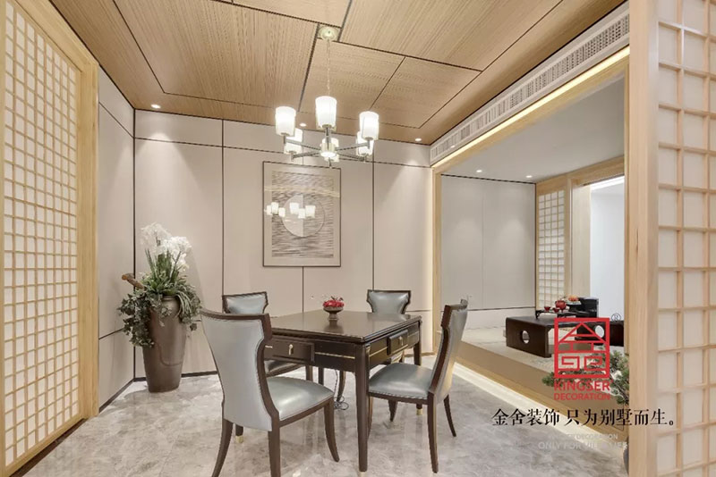 石家莊金舍裝飾劉永佳設計總監為唐宮原著做的成品樣板間,一個樣板間的設計不光是為了凸顯出美觀,更是為了更多需要買房的業主提供一個很好的直觀效果,不能過于復雜,也不能過于簡單。設計師凸顯出的不僅僅只是對于中式元素的詮釋,更是一種對于生活本質的剖析,一花一樹一菩提,一夜一夢一平生,既是一種恬靜中的自我感悟,又是一種望淡然又無法擺脫塵世的遺憾。