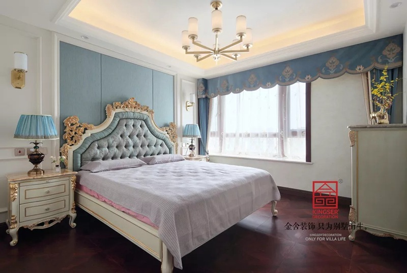 本案在設計中摒棄繁瑣裝飾帶來的喧囂疲勞,設計出古典優雅的感覺;家具造型厚重,比例適中,有如威尼斯水的柔情,橋的清秀,清新暢快。經典元素與現代主義的曲線主義,讓家具充滿了無拘束的現代味道與簡潔的古典靈感,滿足了久經世事、品位生活的渴望,細節處處展現著主人的溫柔、嫵媚。