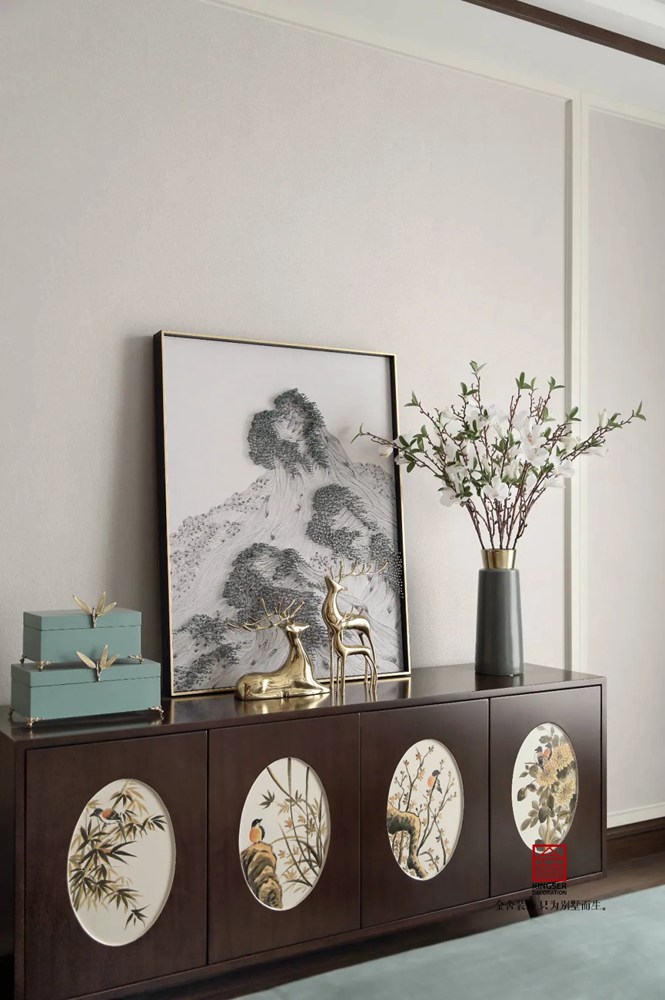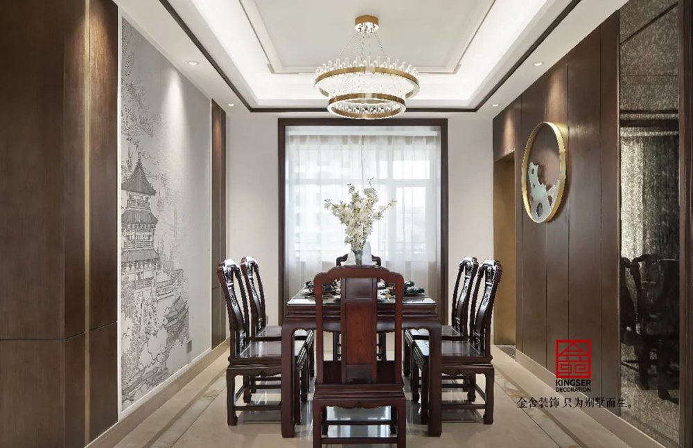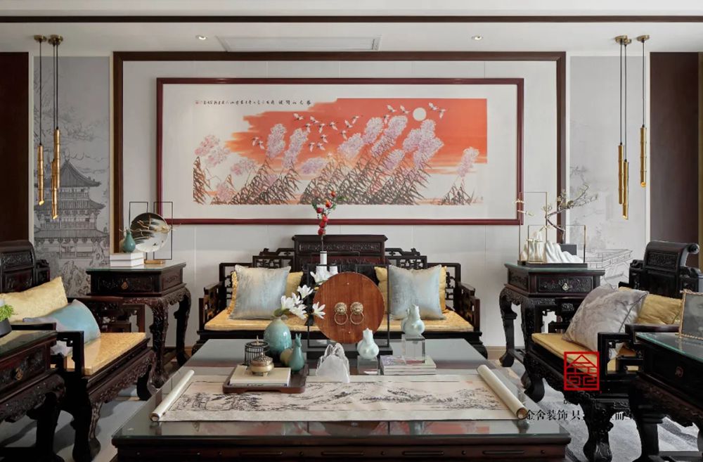 此案例為石家莊金舍裝飾-天海容天下170平米新中式風格裝修實景。新中式設計風格,有多彩豐滿,有瘦金雅致,有融合奔放。這一切是東方審美下,被現代主義漸融洗滌,成就新中式之名。