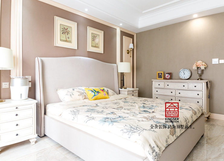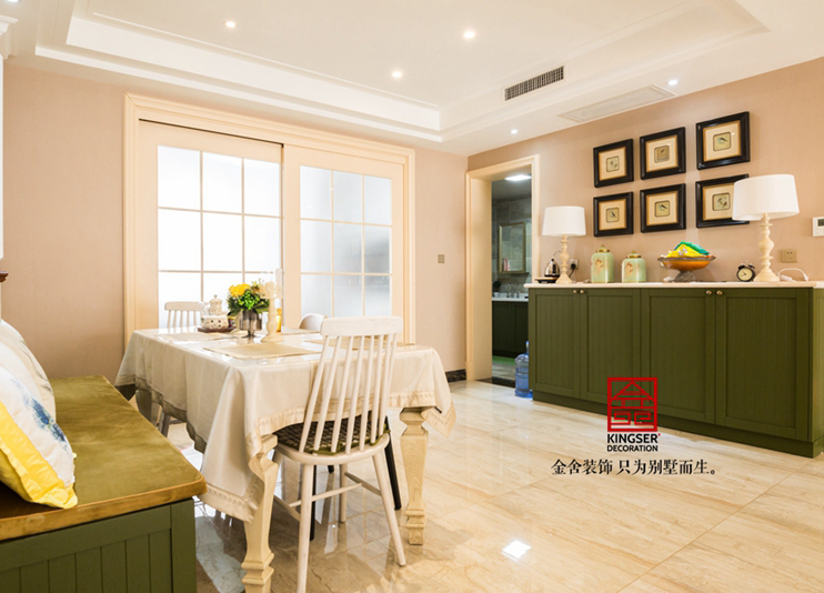 空間以大米和白色為主,體現了家庭的高貴感,帶有清新自然的家具,不僅體現了美國式的風格,還體現了家庭的自然感受。