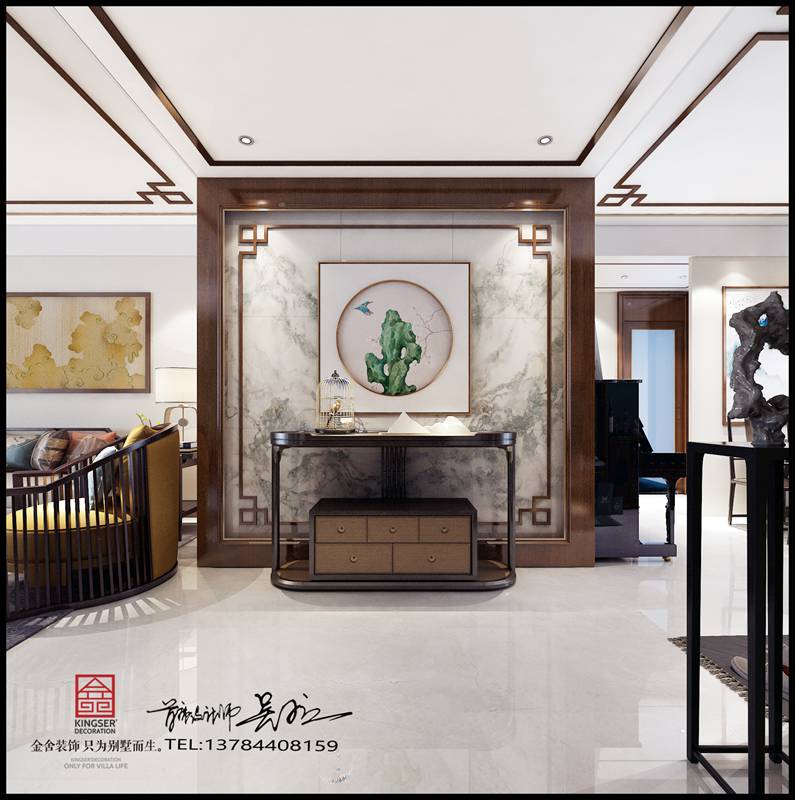 本方案為石家莊金舍裝飾-榮盛華府178平米新中式風格裝修效果圖。風格為新中式,倦鳥歸林,魚翔淺底,落葉歸根,這都是對