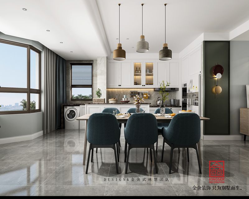 設計說明:本案為石家莊金舍裝飾-榮盛華府190平米現代風格裝修效果圖。是一套現房住宅,位于榮盛華府,因為是邊戶的住宅戶型加上本身樓層偏高,所以整體采光比較好,這也是本案考慮設計用色的一個關鍵點,本案業主是一位年輕的男士,也是準備結婚的婚房。由于工作性質,很喜歡花藝綠植以及一切跟美好相關的事物,喜歡的風格是簡單的淺灰色調自然系北歐風,所以在用色上我們采用了大面積淺灰色調搭配局部亮色點綴,再加上經典的木色系家具沉淀氣質,他們的小家就這樣應運而生,我們用最淳樸的藝術語言,詮釋著屬于他們的專屬幸福。