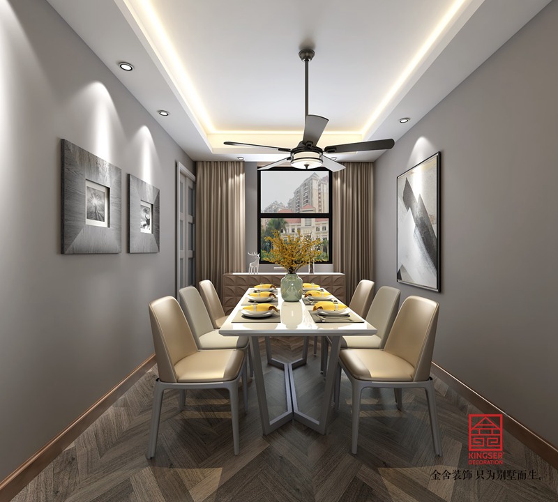 此案例為石家莊金舍裝飾-維多利亞三期156平米現代風格裝修效果圖。高級灰最神秘的色域,渾厚有力,可調性讓其隨意搭配。深邃、寧靜、高雅、神秘都不足以形容,這種調調不僅有范兒,還藏有大師的設計格調,游走黑白之間,沒有黑的剛硬,也無白的純粹,帶著幽幽的意境之美,泛著淡淡的柔和之光,這就是東方高級灰的生活美學。