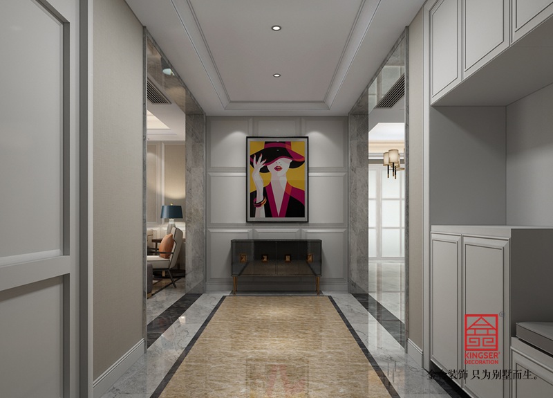 黃銅的精彩應用,盡情演繹了材質和精湛工藝所承載的文化和創意。在玄關,裝飾畫等配飾上黃銅元素的彼此呼應,更是讓每一處細節由內而外散發出氣質美感。