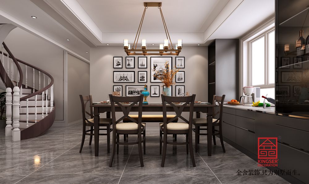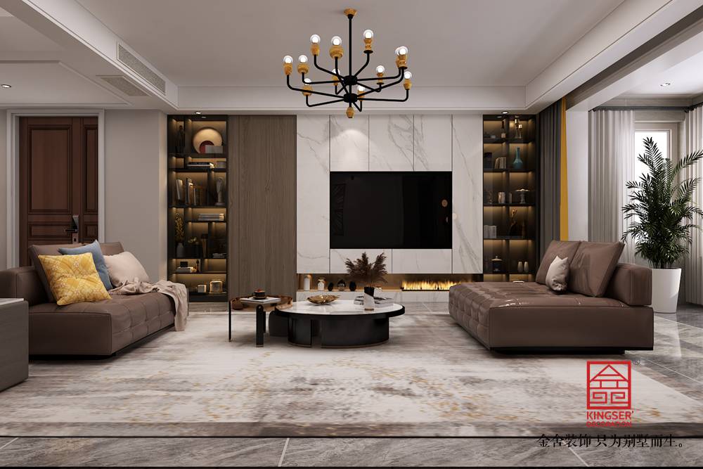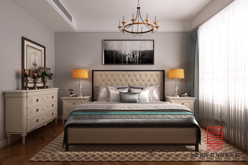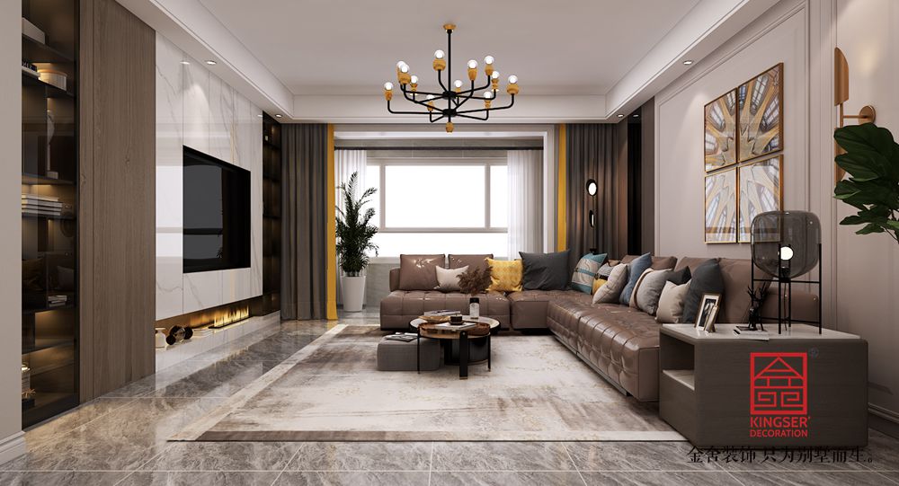 設計說明:本案例是金舍裝飾-東南智匯城191平米現代美式風格裝修效果圖??傮w設計風格是現代風格偏點美式風格?,F代風格在室內裝飾設計方面它主要注重強調功能性設計,線條簡約流暢,色彩對比強烈,這是現代風格家具的特點。