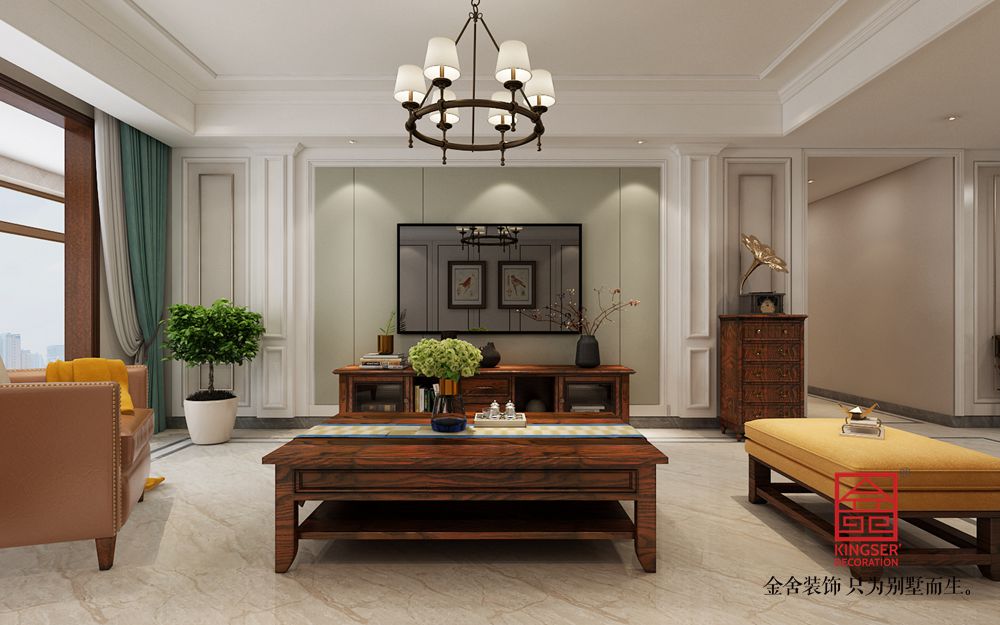 設計說明:此案例為石家莊金舍裝飾-融創中心217平米簡美風格裝修效果圖。簡美風格即是簡約美式風格,客廳裝飾韻味既含有古典美式的華貴又有現代風格的簡約,運用清亮的色彩,從硬裝到軟裝追求空間的干凈與利落,不做復雜的空間布局,讓室內充滿溫馨和舒適的感覺,帶給人休閑式的浪漫生活,餐廳基本上都與廚房相連,廚房的面積較大,操作方便、功能強大,廚房的多功能還體現在家庭內部的人際交流多在這里進行,這兩個區域會同起居室連成一個大區域,成為家庭生活的重心。
