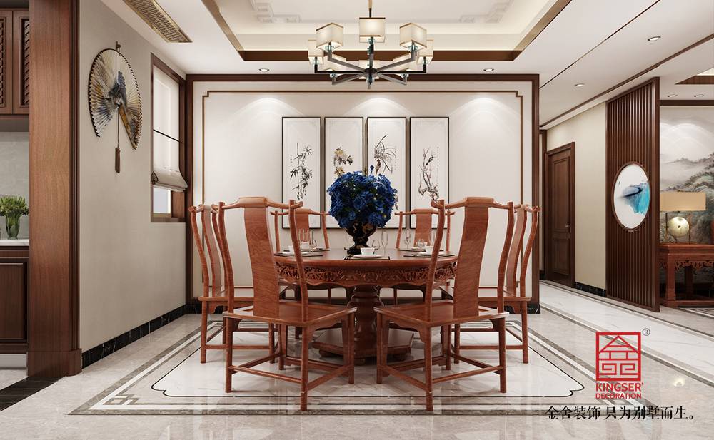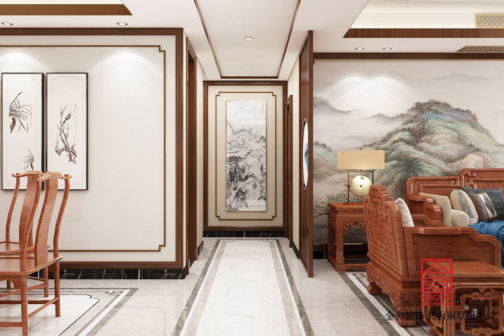 設(shè)計(jì)說(shuō)明:本案為石家莊金舍裝飾-維多利亞三期166平米中式風(fēng)格裝修效果圖。風(fēng)格定義為中式風(fēng)格,中式風(fēng)格非常講究空間的層次感,在需要隔絕視線的地方,則使用中式的屏風(fēng)、中式木門、工藝隔斷、簡(jiǎn)約化的中式“博古架”,通過(guò)這種新的分隔方式,展現(xiàn)出中式家居的層次之美,客餐廳空間添加了中式山水畫(huà)祥云圖案元素,使整體空間感覺(jué)更加豐富,大而不空、厚而不重,有格調(diào)又不顯壓抑。