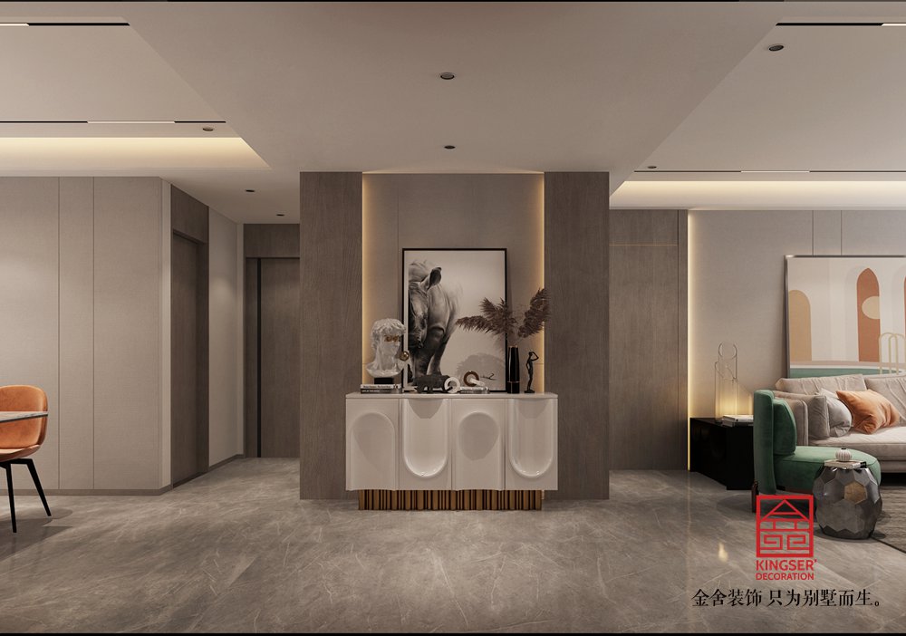 主案設計師:康立翅 設計說明:本案是金舍裝飾-榮盛和府183平米現代簡約風格裝修效果圖。現代簡約風格,打破傳統設計理念。本案的業主是一對待婚的年輕人,在年輕人心中,現代簡約風格是時尚、前衛的家居裝修風格。