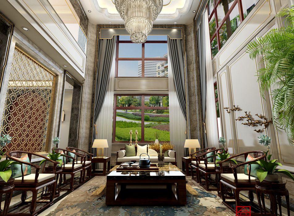 此案例為石家莊金舍裝飾-北苑別墅800平米新中式風格裝修設計圖。新中式風格中的家具大多是古典家具或者是現代家具與古典家具想結合。家具的顏色主要是以深色為主,有深厚沉穩的底蘊。裝飾造型主要采用硬朗簡潔的直線條,空間具有層次感。既使得中式家具古典、質樸的內涵顯現,又符合現代人追求的時尚感、實用性。 金舍裝飾在室內設計中,一貫追求照搬古代設計往往效果不盡如人意,更要注重加入現代元素。現代技術中有很多新型材料,就可以善加利用進去。另外在設計中也可以把主人的個人喜好、品味等也加入進去。既滿足現代人居住的要求,迎合中式家具的設計風格。