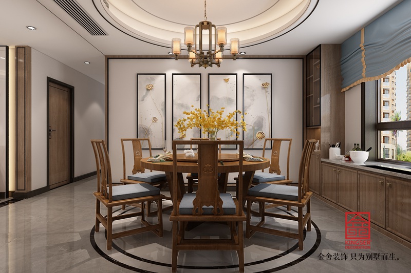 本案為石家莊金舍裝飾-東南智匯城191平米新中式風格裝修案例。風格定義為新中式風格。