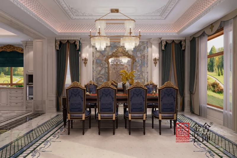 此案例為石家莊金舍裝飾-原河名墅600平米法式風格裝修效果圖。法式風格往往不求簡單的協調,而是崇尚沖突之美。在設計上講求心靈的自然回歸感,給人一種撲面而來的濃郁氣息。同時法式風格裝修彰顯出法國人對美的追求,特別是細節的處理,大量運用廊柱、雕花、線條等來提升裝飾效果,并采用精細的施工工藝,表達出法國人獨特的浪漫情懷。