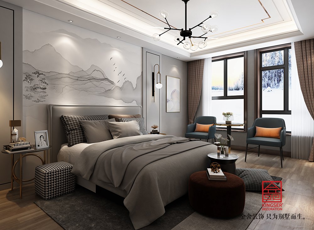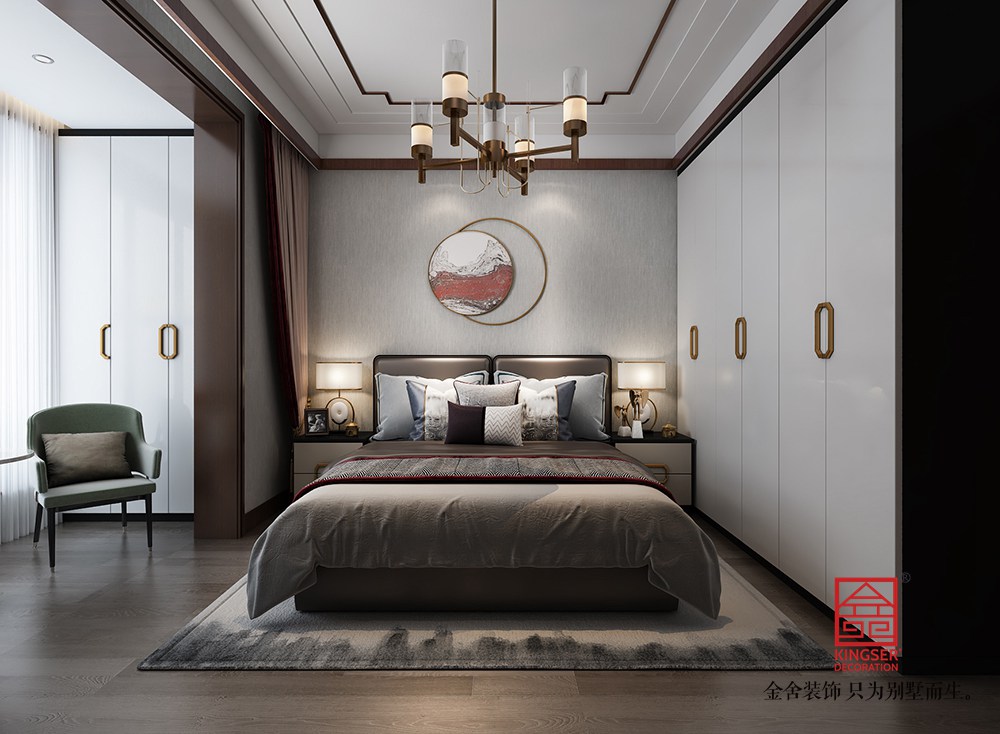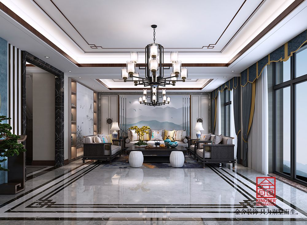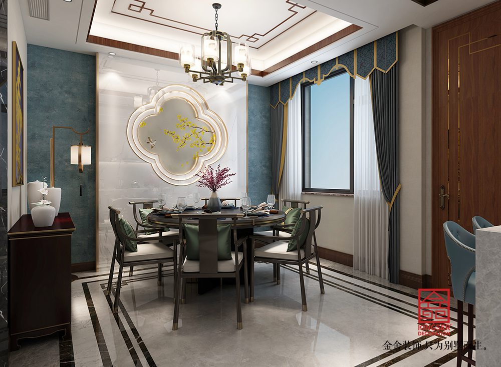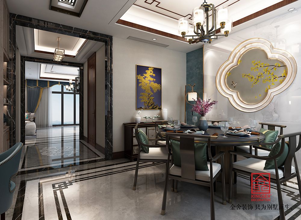 設(shè)計說明:此案例為石家莊金舍裝飾-大者280平米新中式風格裝修效果圖。將現(xiàn)代元素與傳統(tǒng)元素相互結(jié)合的形式而產(chǎn)生的,同時以現(xiàn)代人的觀點來體現(xiàn)出與傳統(tǒng)中國風格不一樣的設(shè)計。同時新中式風格大多數(shù)采用對稱性的設(shè)計,體現(xiàn)出一定的協(xié)調(diào)性。中國傳統(tǒng)的室內(nèi)陳設(shè)包括字畫、匾幅、掛屏、盆景、瓷器、古玩、屏風、博古架等物品來體現(xiàn)出中式風格,同時為了體現(xiàn)出室內(nèi)的現(xiàn)代感,又將中式古典的特色的裝飾物進行現(xiàn)代風格的再次設(shè)計,體現(xiàn)出新中式風格設(shè)計理念。