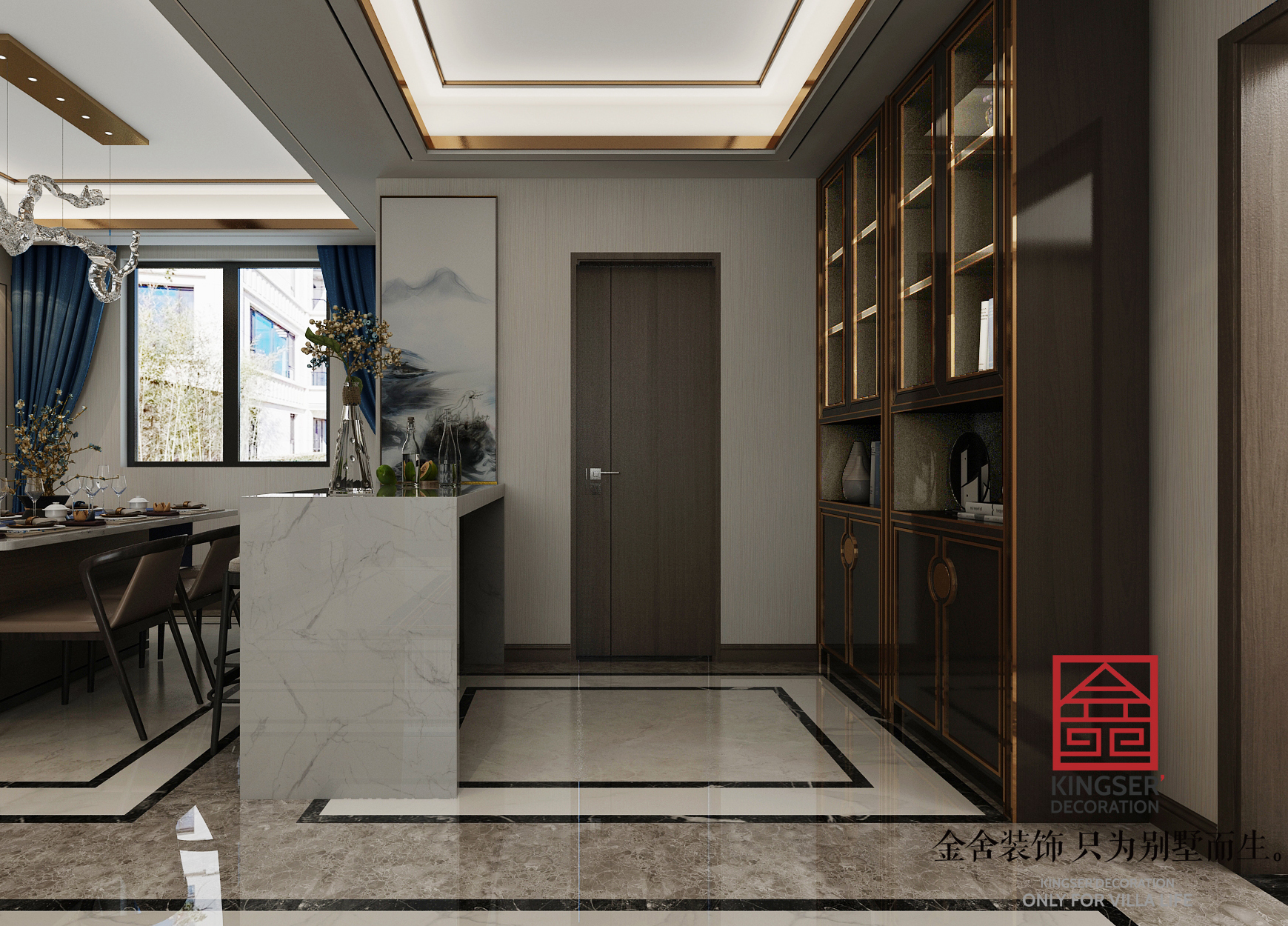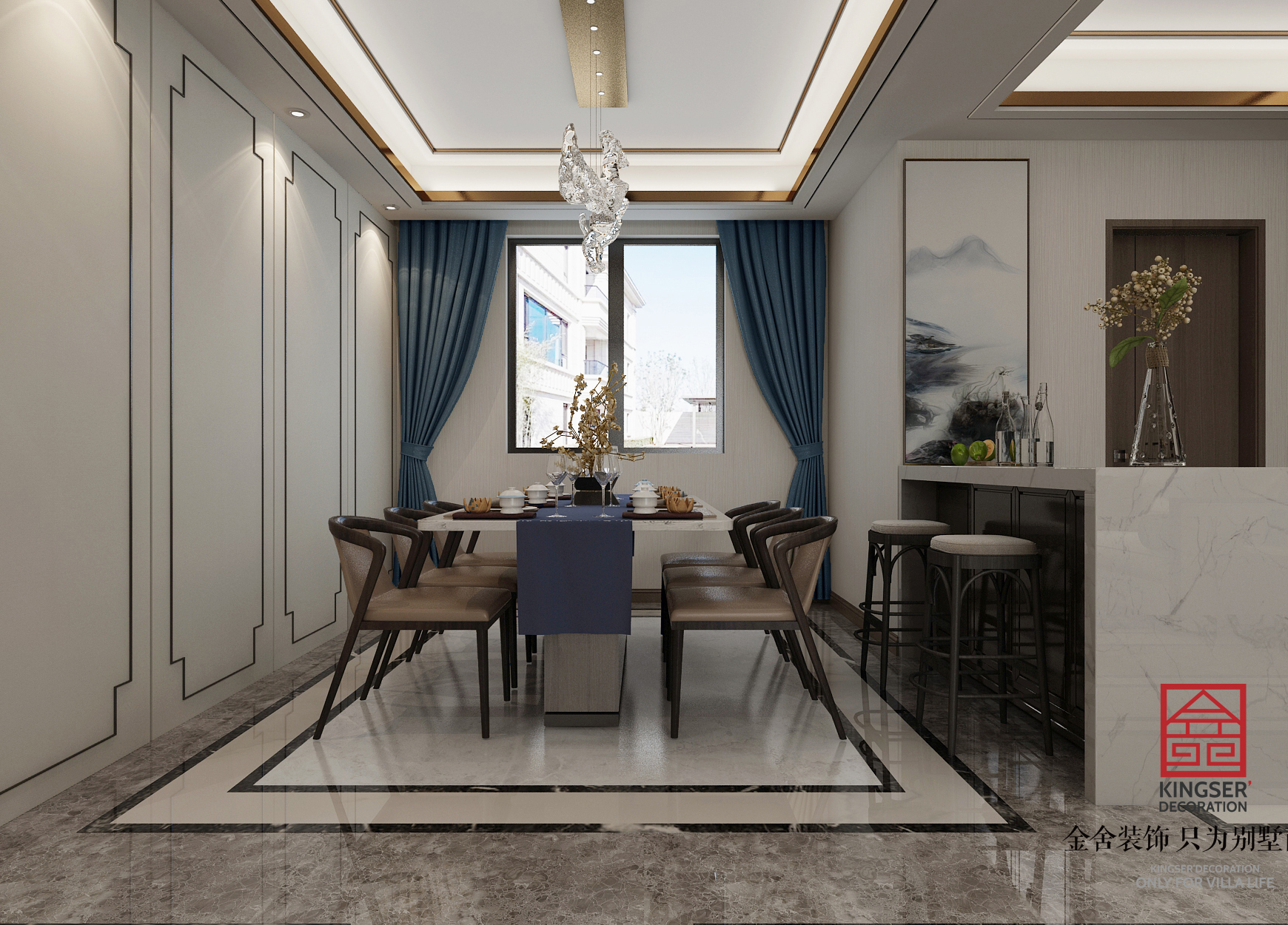 此案例為石家莊金舍裝飾-翰林甲第154平米新中式風格裝修效果圖。