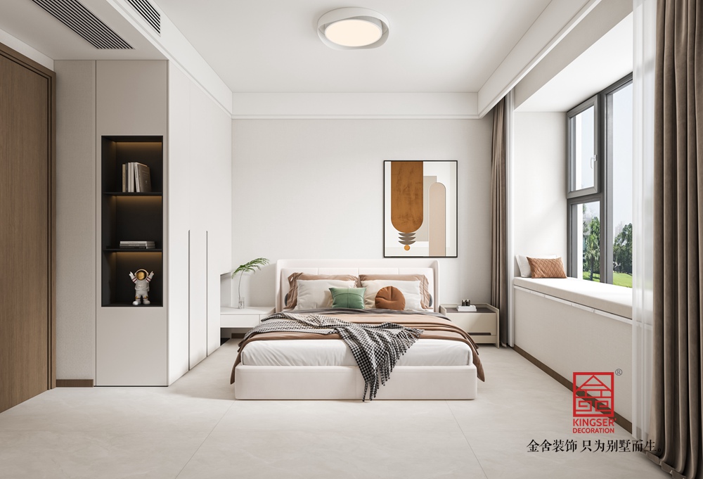 本客廳設計以現代簡約風格為核心,主打溫暖柔和的大地色系。空間布局上,將休閑與功能區巧妙融合,背景墻處的柜體設計,兼具收納與展示功能,燈光點綴更顯精致。家具選擇注重舒適與質感,淺米色大沙發搭配棕色系單品,營造出溫馨和諧的氛圍。雙層環形吊燈造型別致,為空間增添時尚感。整體通過材質、色彩與燈光的搭配,打造出一個舒適、雅致且充滿生活氣息的別墅起居空間。