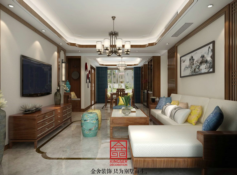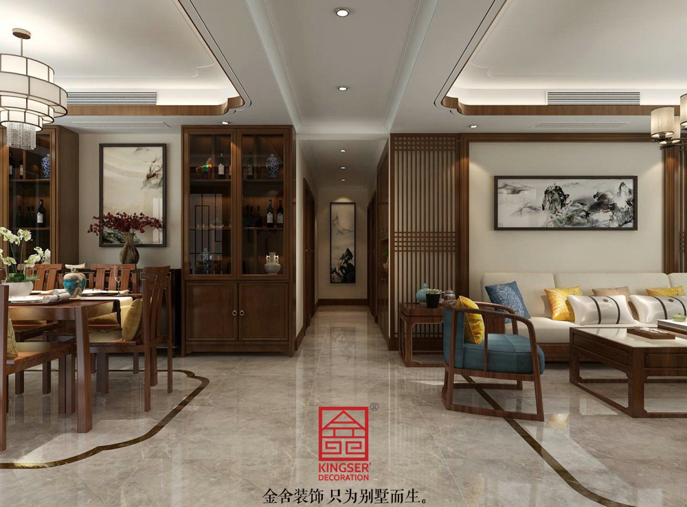 設(shè)計(jì)說(shuō)明:此案例為石家莊金舍裝飾-東南智匯城153平米中式風(fēng)格裝修效果圖。新中式風(fēng)格是中式元素與現(xiàn)代材質(zhì)的巧妙兼柔的布局風(fēng)格,它同時(shí)明清家具、窗欞、布藝床品相互輝映,經(jīng)典地再現(xiàn)了移步變景的精妙小品。中國(guó)風(fēng)并非完全意義上的復(fù)古明清,而是通過(guò)中式風(fēng)格的特征,表達(dá)對(duì)清雅含蓄、端莊豐華的東方式精神境界的追求。